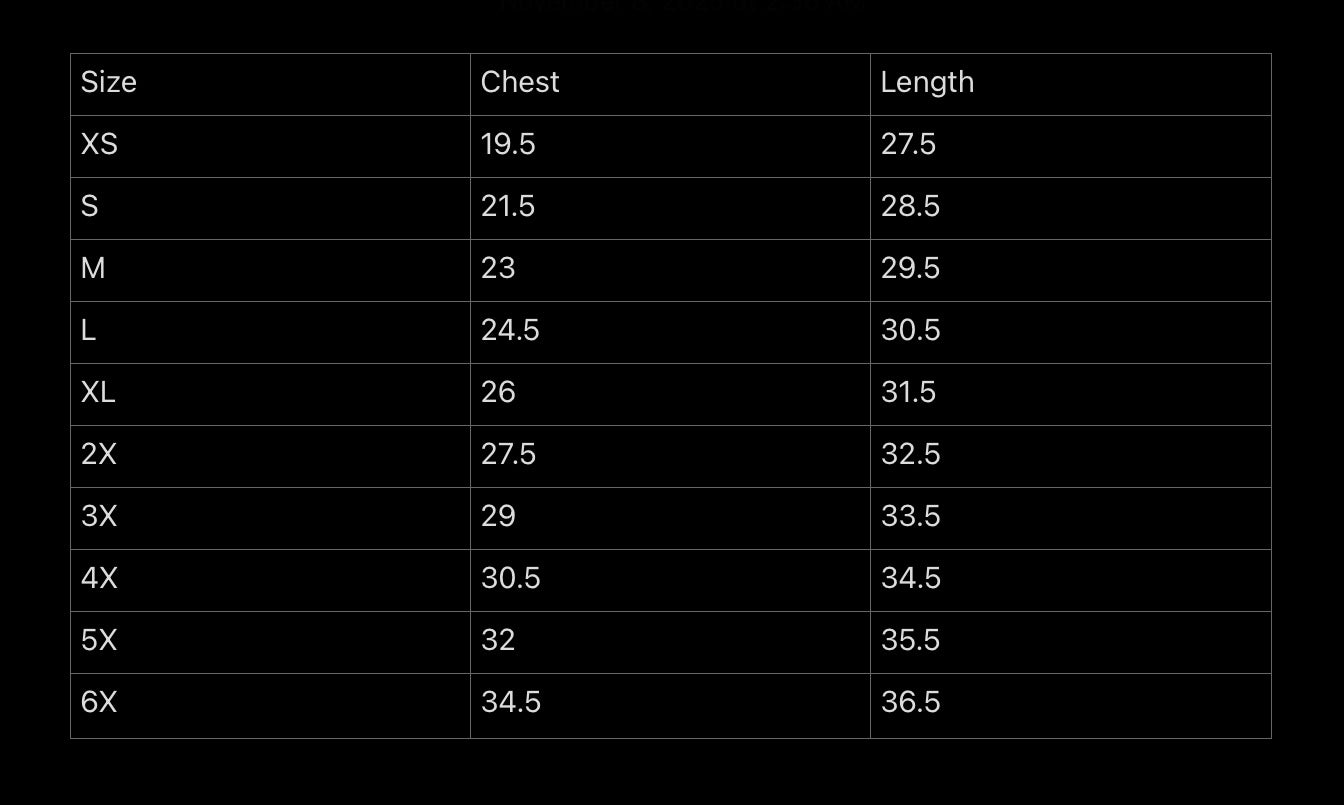 - Size Chart on Last Slide (Inches)
